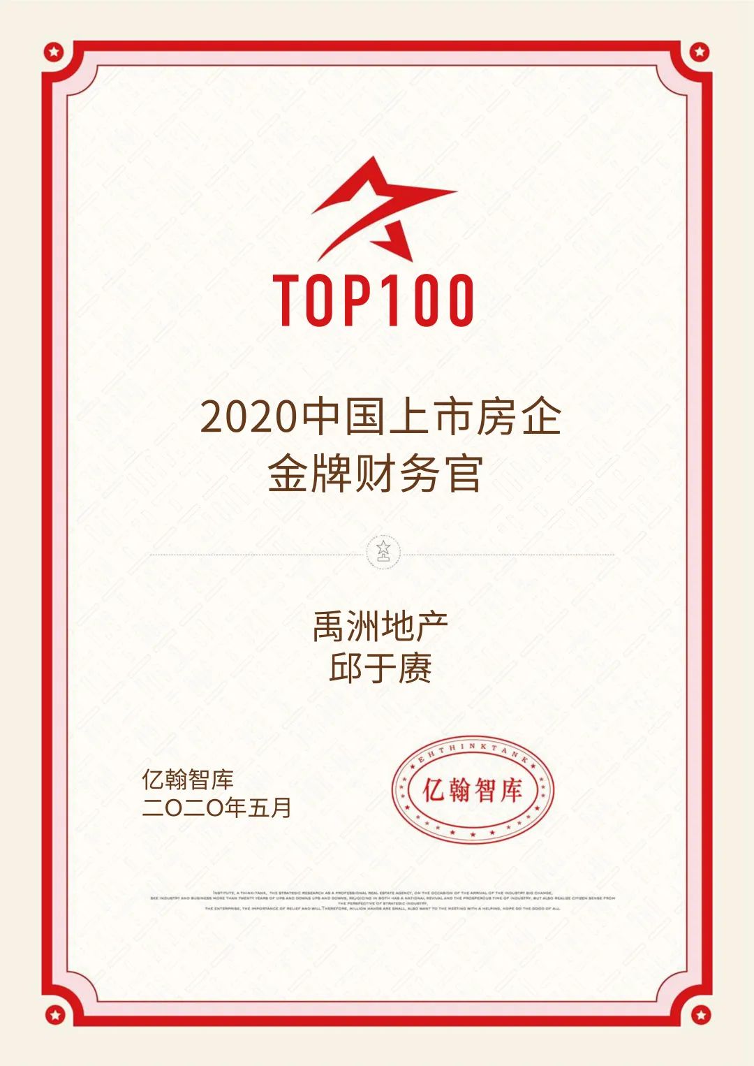 5月28日,在由億翰智庫舉辦的“2020年中國上市房企百強(qiáng)發(fā)布會”中,禹洲地產(chǎn)憑借穩(wěn)健的經(jīng)營風(fēng)格、有質(zhì)量的增長,斬獲“2020中國上市房企百強(qiáng)TOP30”第30名、“2020中國上市房企投資價(jià)值十強(qiáng)”第8名,同時(shí),禹洲集團(tuán)高級副總裁、首席財(cái)務(wù)官及公司秘書邱于賡還榮獲“2020中國上市房企金牌財(cái)務(wù)官”。