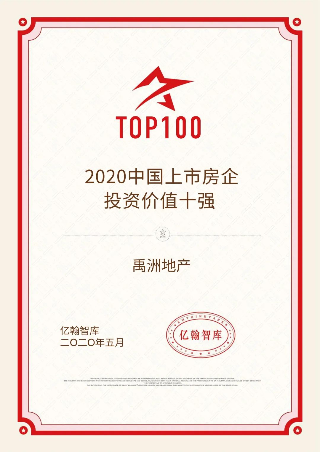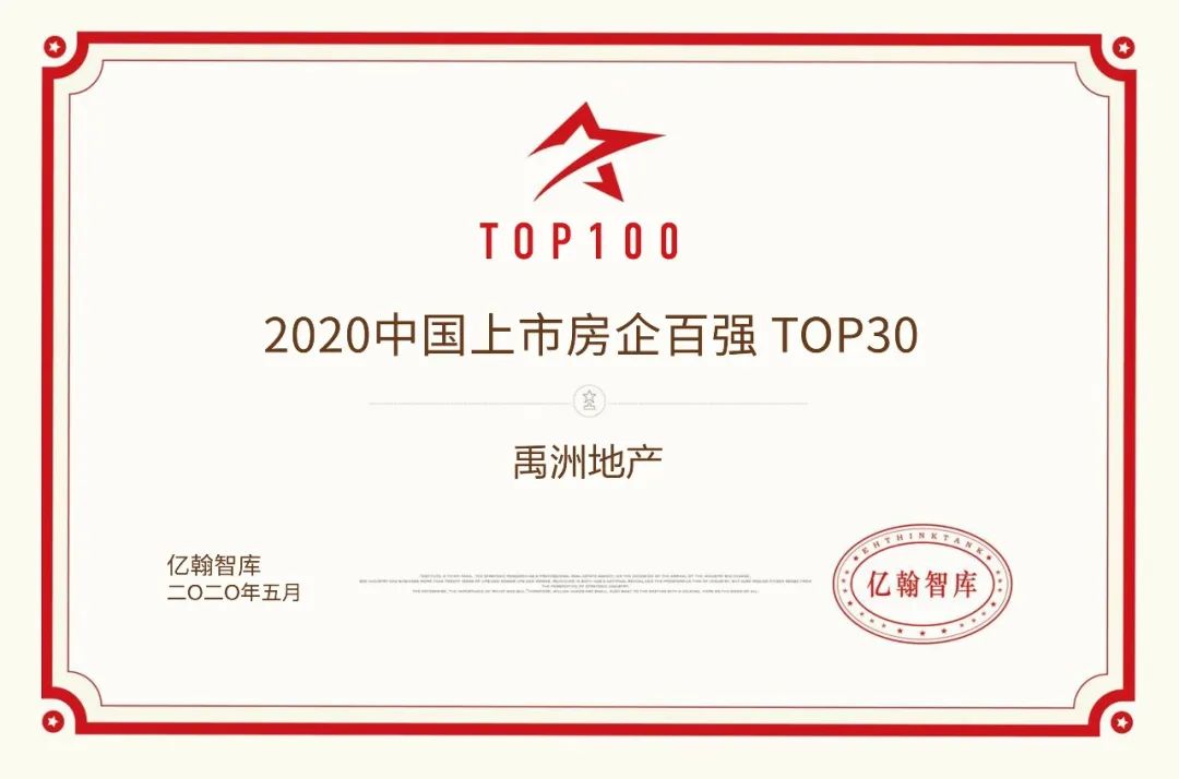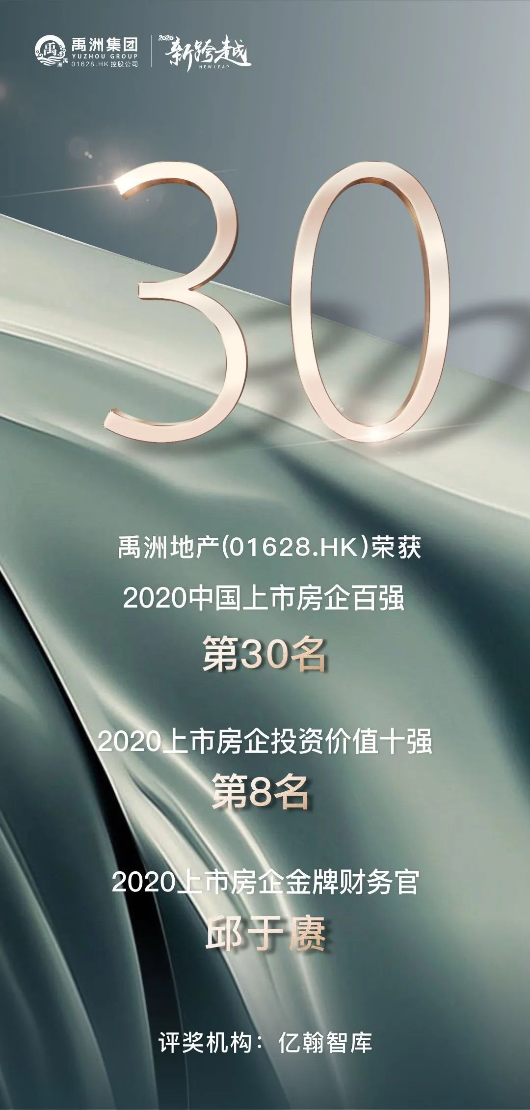 榮譽(yù) | 禹洲地產(chǎn)躋身上市房企30強(qiáng),再獲投資價(jià)值10強(qiáng)等殊榮