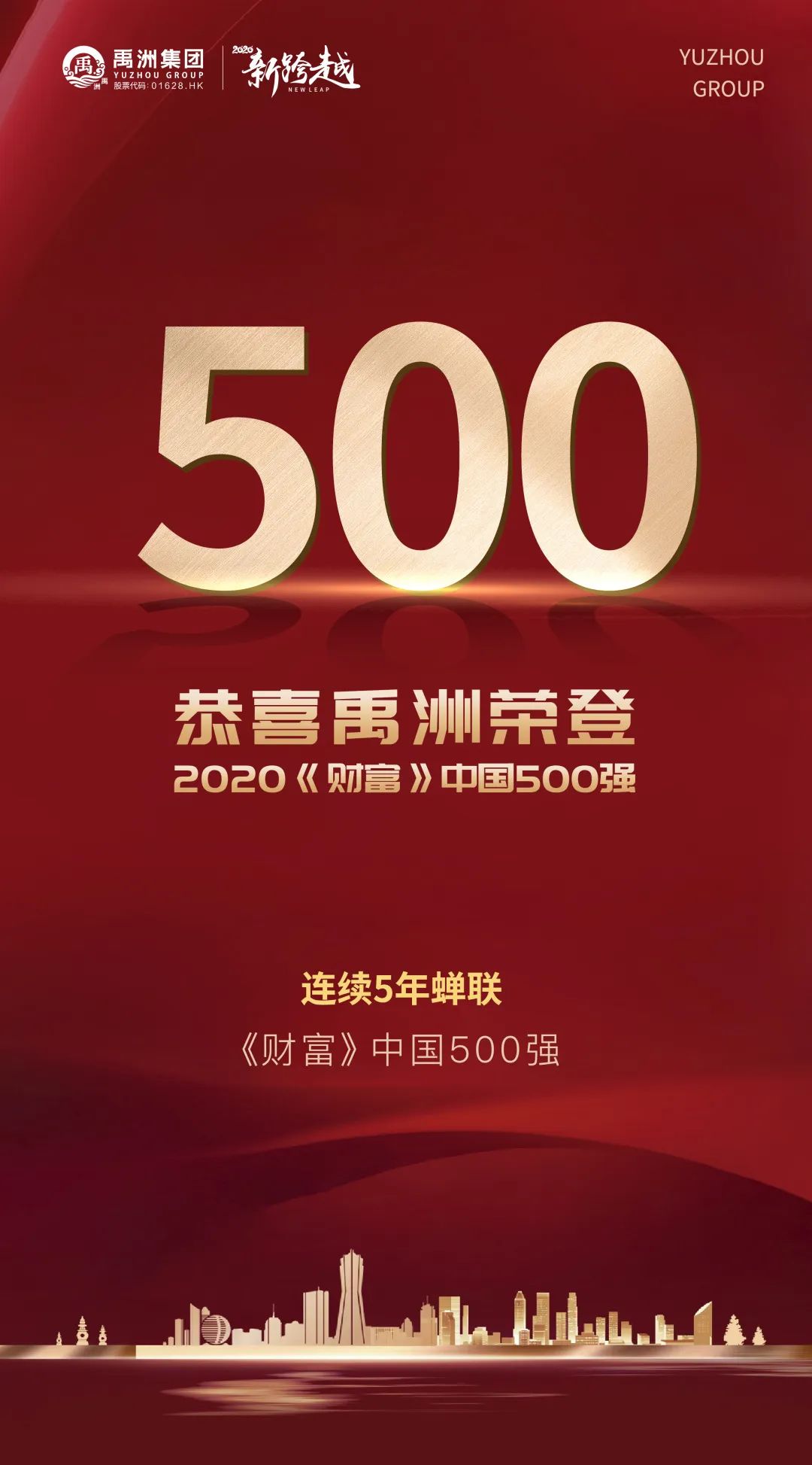 連續(xù)5年,禹洲蟬聯(lián)《財(cái)富》中國500強(qiáng)