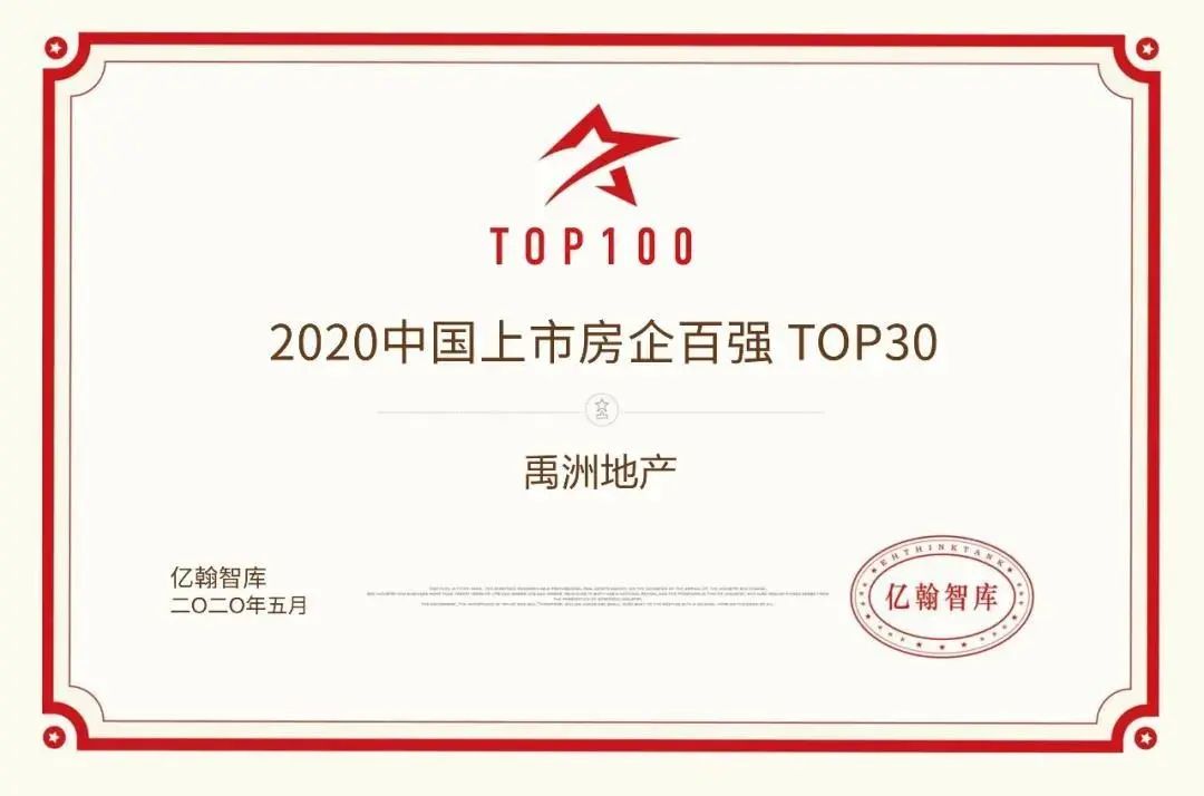 5月,在由中國(guó)指數(shù)研究院主辦的“2020中國(guó)房地產(chǎn)上市公司研究成果發(fā)布會(huì)”上,禹洲集團(tuán)以?xún)?yōu)異表現(xiàn)榮膺“2020中國(guó)大陸在港上市房地產(chǎn)公司財(cái)富創(chuàng)造能力TOP10”第9名。同月,在億翰智庫(kù)主辦的“2020年中國(guó)上市房企百?gòu)?qiáng)發(fā)布會(huì)”中,禹洲斬獲“2020中國(guó)上市房企百?gòu)?qiáng)TOP30”第30名、“2020中國(guó)上市房企投資價(jià)值十強(qiáng)”第8名。