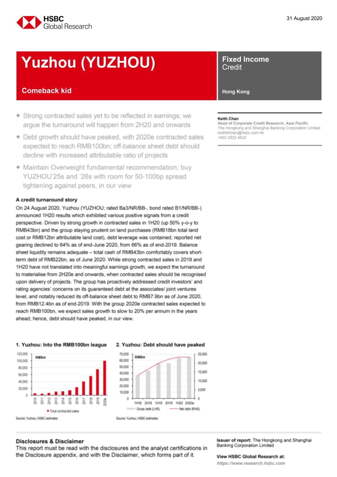 該行又指,禹洲一直以來非常重視投資者及評級機構的看法,積極主動進行了一系列的債務管理舉措,嚴格控制債務規(guī)模,將其表外負債從2019年底的人民幣124億元大幅降低36%至2020年6月底的人民幣79億元。資本市場也對禹洲集團的債務管理成果深表認可,惠譽最新確認禹洲“BB-”長期外幣發(fā)行人評級,展望“穩(wěn)定”。前不久,穆迪也確認了禹洲“Ba3”企業(yè)家族評級(CFR)和債券“B1”高級無抵押評級,并將展望上調(diào)為“穩(wěn)定”。匯豐指出,從信貸角度來看,禹洲正展示出各種積極正面的信號,其負債水平已經(jīng)見頂,并且在未來將持續(xù)穩(wěn)健的債務結構。