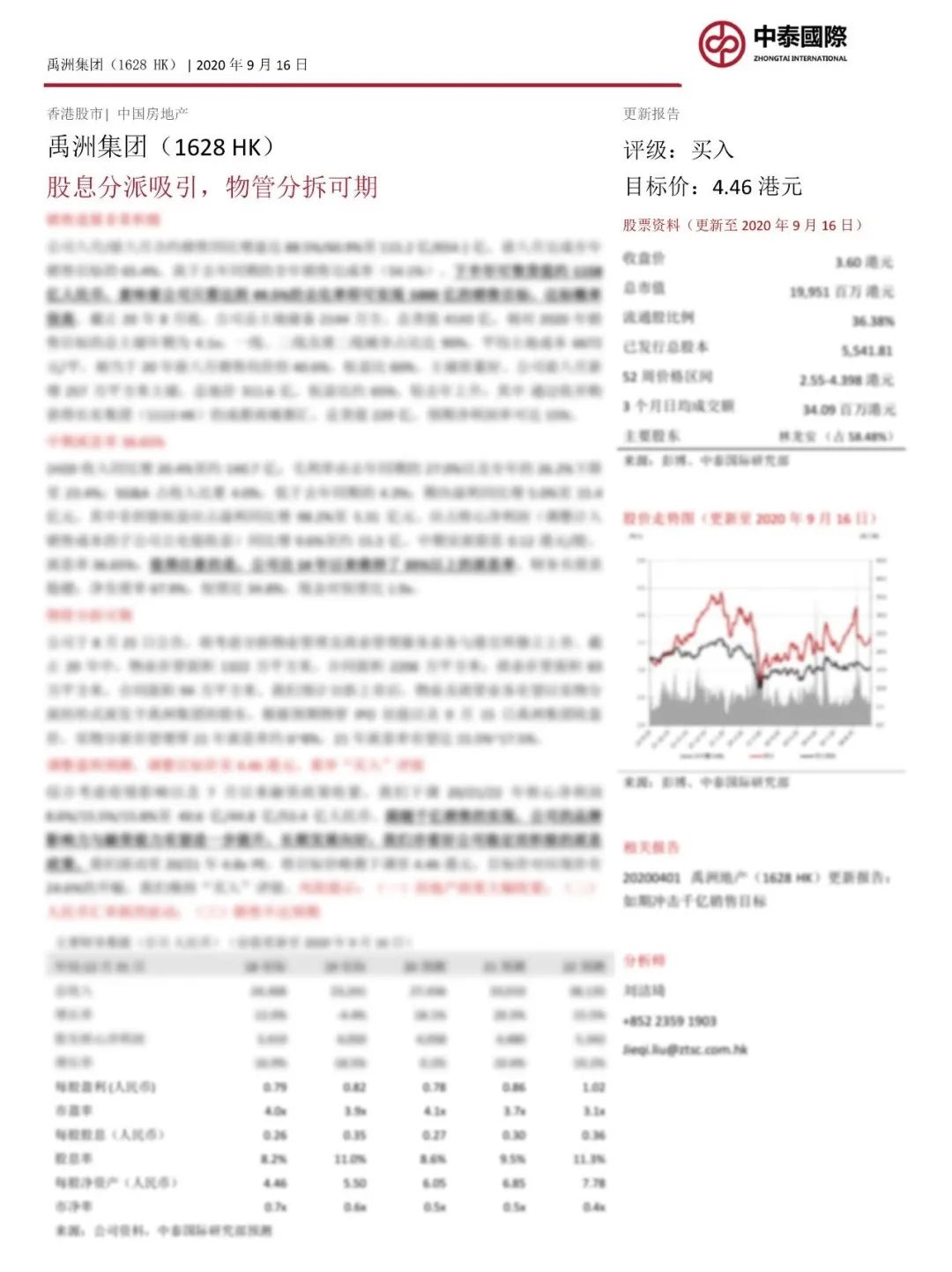 中泰國際 | 禹洲集團(01628.HK):銷售進展積極,股息分派吸引,物管分拆可期