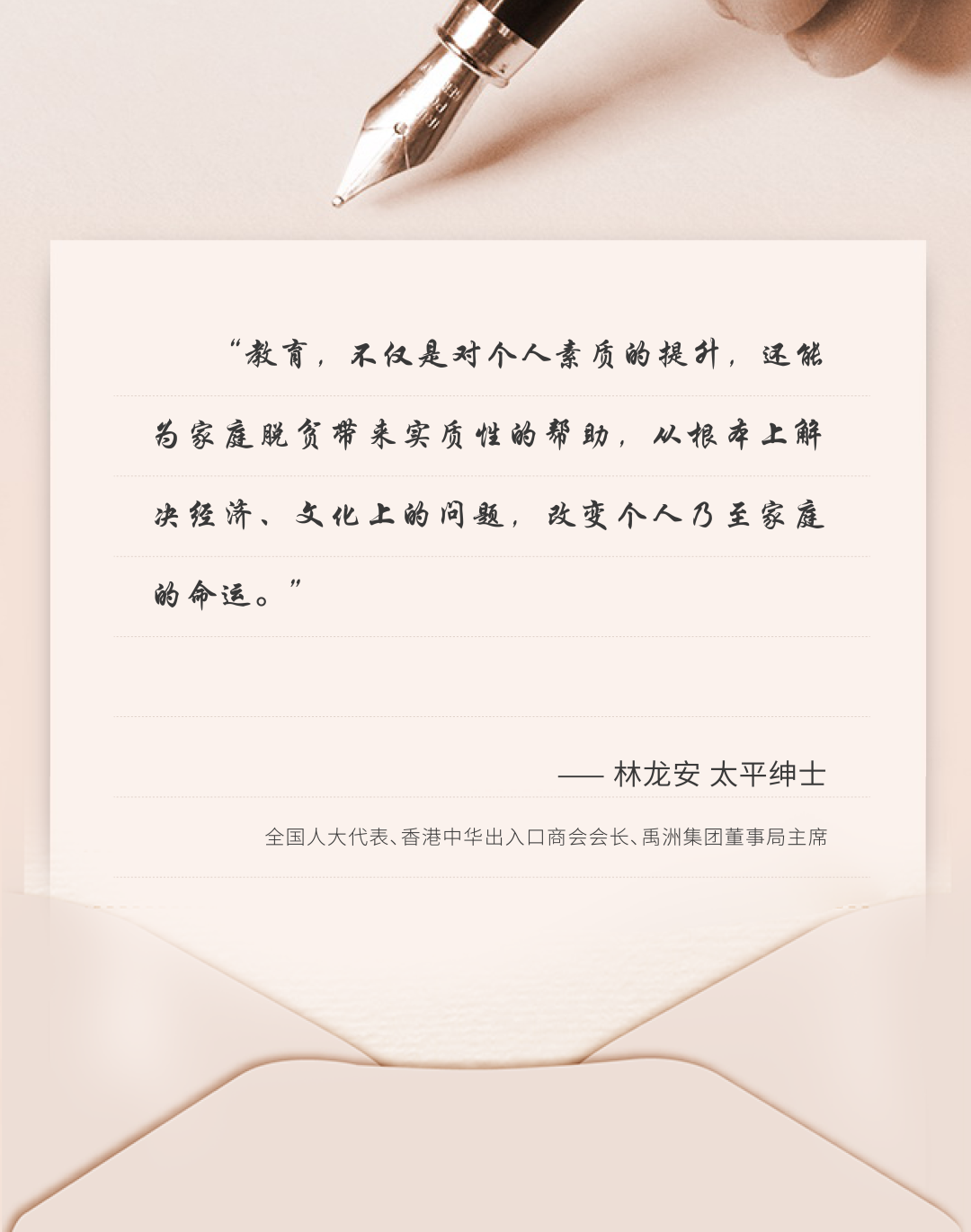 捐資助學(xué),一直是20余年來禹洲公益事業(yè)關(guān)注的焦點之一。僅在此次公益季中,禹洲已先后為高校、中學(xué)、幼兒園教學(xué)等提供數(shù)百萬元愛心資助。
