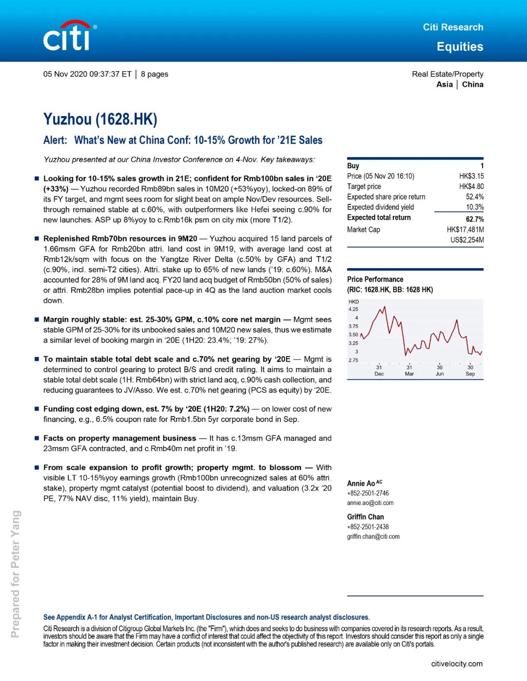 花旗 | 禹洲集團(01628.HK)合約銷售再創(chuàng)新高,債務(wù)結(jié)構(gòu)健康穩(wěn)健,物管業(yè)務(wù)分拆可期,重申“買入”評級