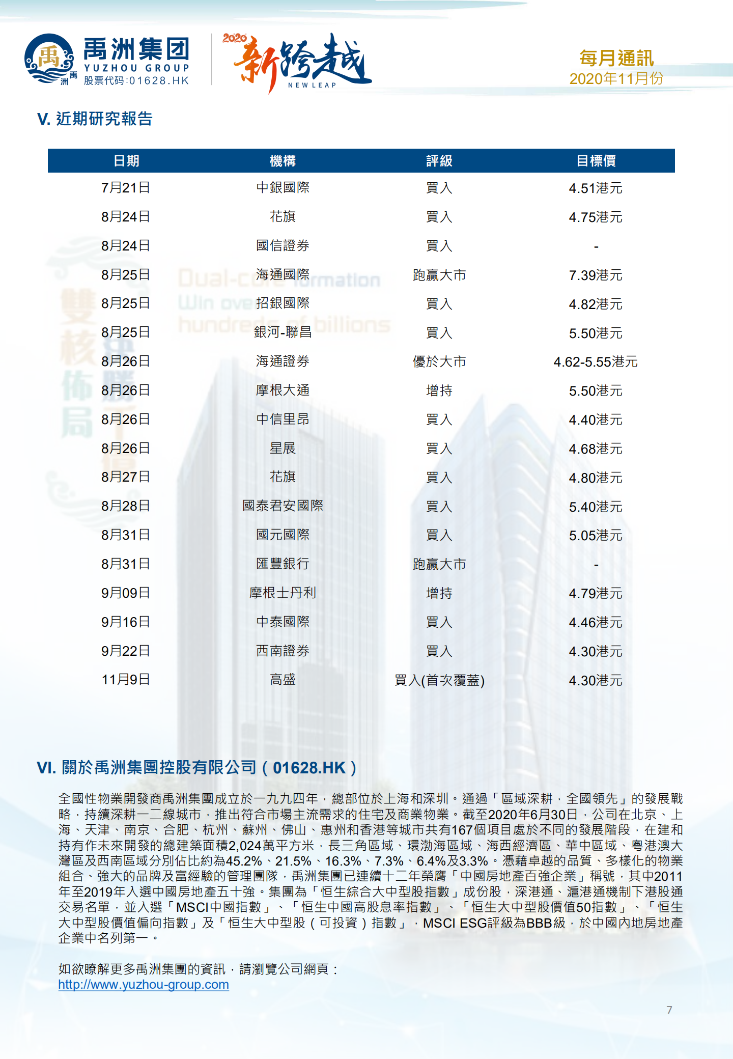 良好的產(chǎn)品力支撐著禹洲集團業(yè)績持續(xù)上升,業(yè)務版圖不斷壯大,完成躋身千億規(guī)模房企梯隊,潛力無限的禹洲集團也獲得來自資本市場的頻頻認可。早前國際知名投行高盛發(fā)表研究報告,首次覆蓋禹洲集團并給予禹洲“買入”評級,目標價4.3港元。高盛指出,禹洲近年積極透過多元化方式吸納優(yōu)質土地儲備,新增土地儲備地理位置優(yōu)越,絕大部分都位于一、二線核心城市,并且積極布局長三角、大灣區(qū)等核心地區(qū),為后續(xù)銷售提供了多重保障,并支撐盈利能力穩(wěn)步提升。另外,集團債務結構持續(xù)優(yōu)化,加上即將分拆的物管業(yè)務有望進一步提升派息水平,高盛看好禹洲未來發(fā)展。