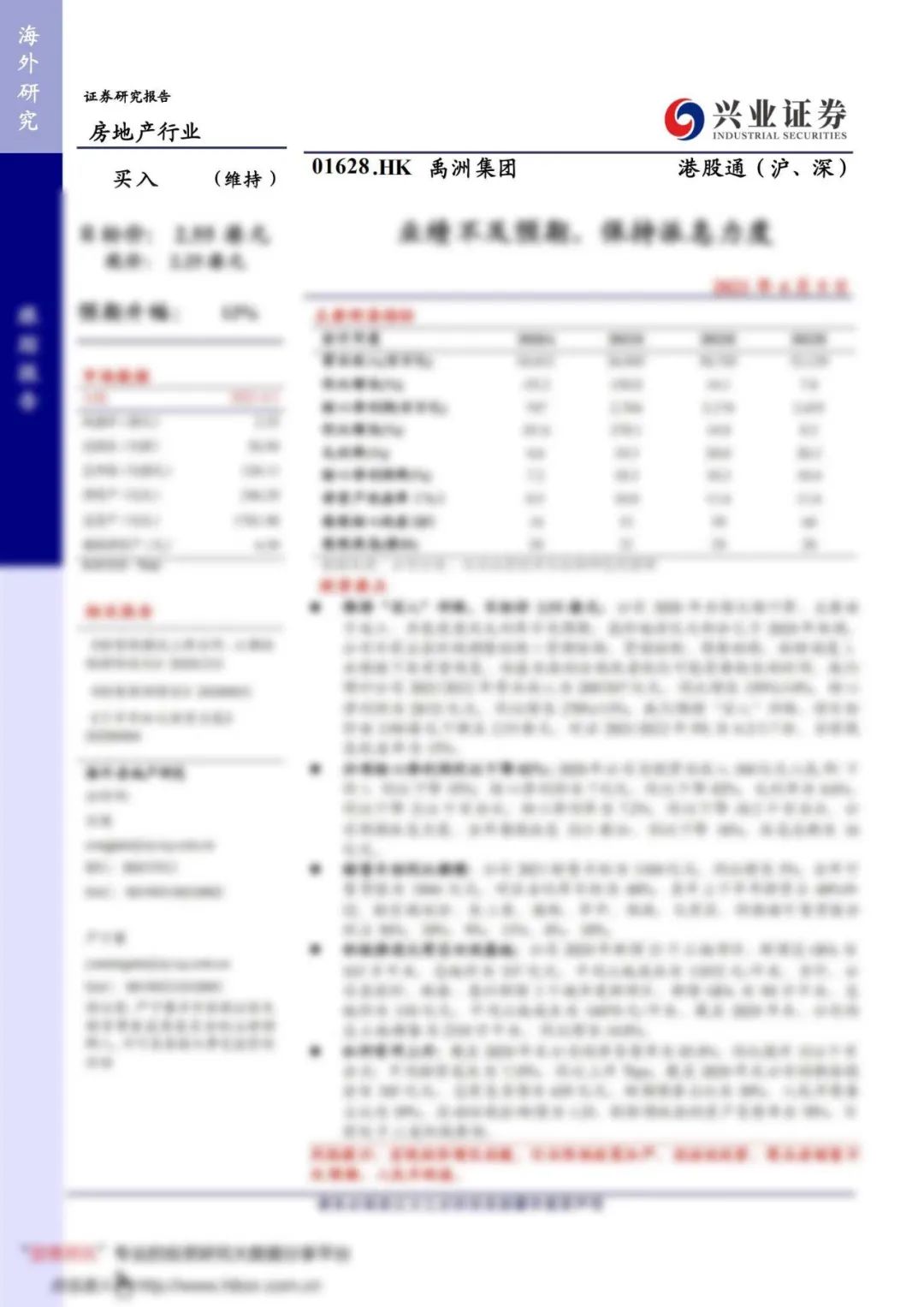 興業(yè)證券|禹洲集團(tuán)(01628.HK)積極推進(jìn)大灣區(qū)舊改,繼續(xù)降低負(fù)債,2021年業(yè)績有望恢復(fù),維持“買入”評級