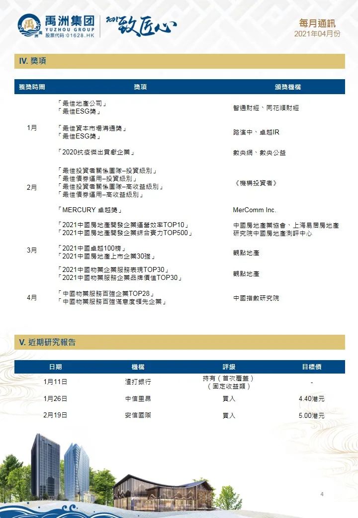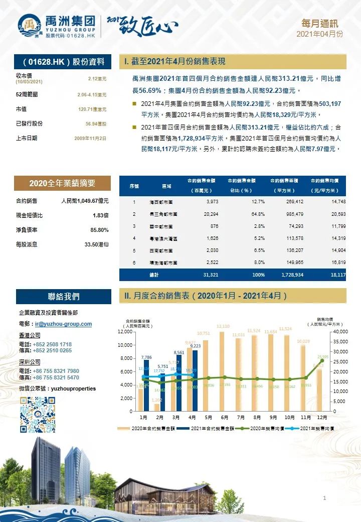 2021年4月,禹洲集團(tuán)實(shí)現(xiàn)合約銷(xiāo)售金額為人民幣92.23億元,合約銷(xiāo)售面積為503,197平方米,合約銷(xiāo)售均價(jià)約為人民幣18,329元/平方米。