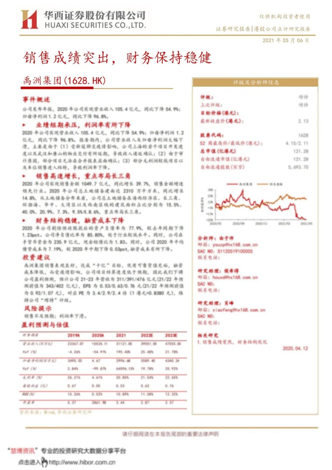 華西證券 | 禹洲集團(01628.HK)盈利水平有望回升,財務(wù)結(jié)構(gòu)穩(wěn)健,融資成本下降,維持“增持”評級