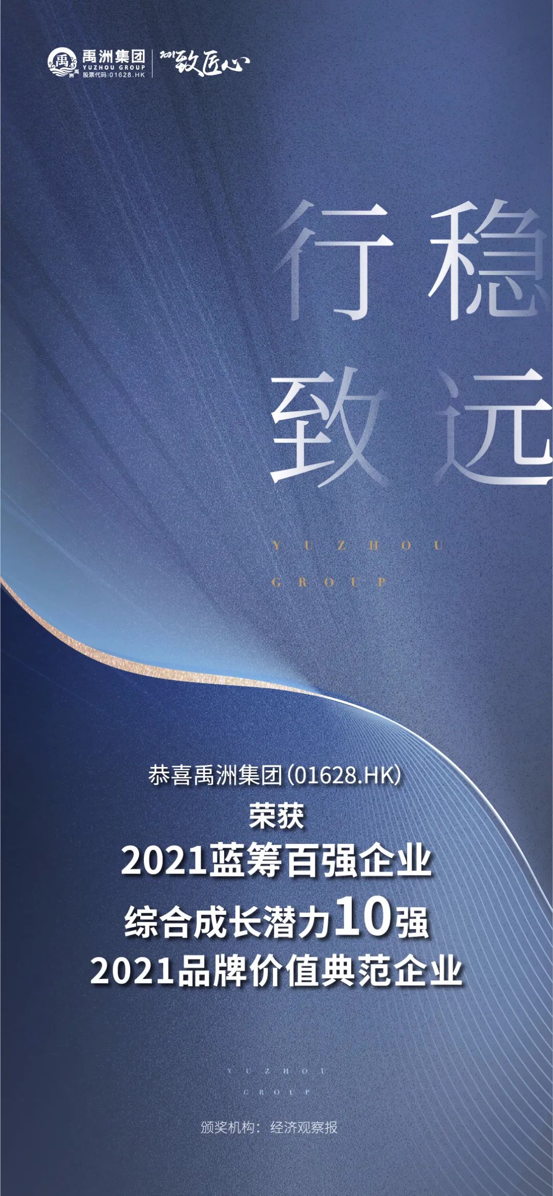 穩(wěn)健前行!禹洲集團獲2021“藍籌百強企業(yè)”等三項榮譽