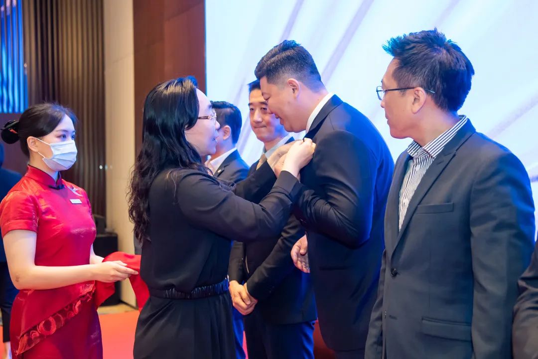 會(huì)議上,郭英蘭副主席還為新入職的中高管頒發(fā)并佩戴司徽,勉勵(lì)他們?yōu)橛碇薨倌昶髽I(yè)的遠(yuǎn)大目標(biāo)不斷貢獻(xiàn)智慧。