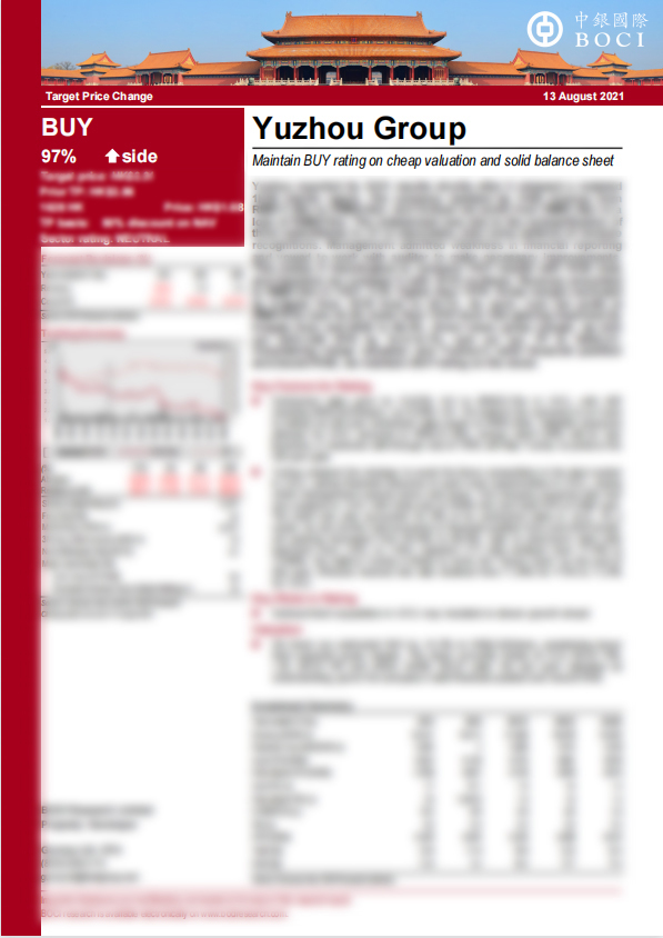 中銀國(guó)際|禹洲集團(tuán)(01628.HK)業(yè)績(jī)表現(xiàn)優(yōu)于預(yù)期 債務(wù)結(jié)構(gòu)持續(xù)優(yōu)化 維持“買入”評(píng)級(jí)