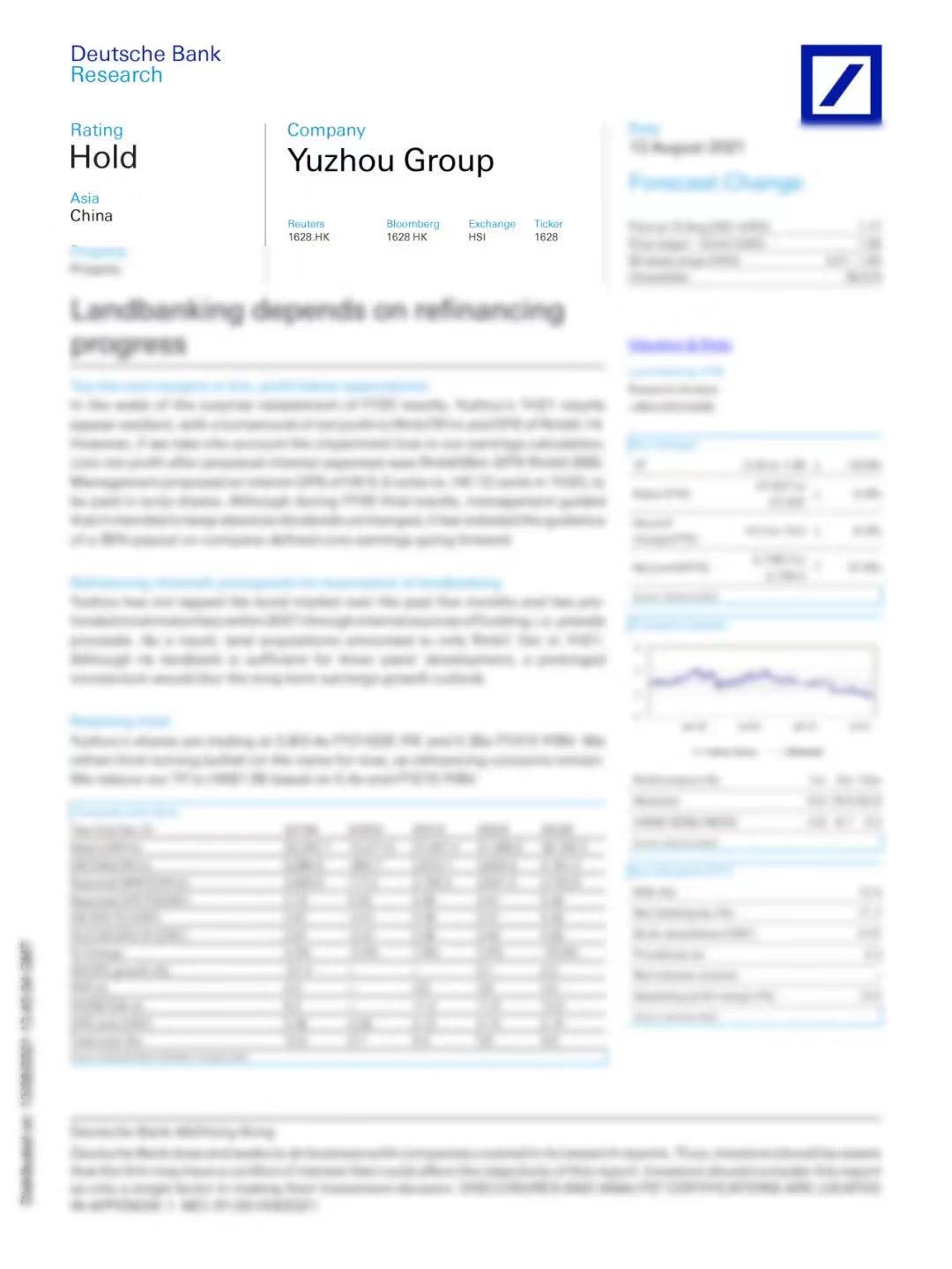 德意志銀行 | 禹洲集團(01628.HK)中期業(yè)績兌現(xiàn)承諾 “三條紅線”達標在望