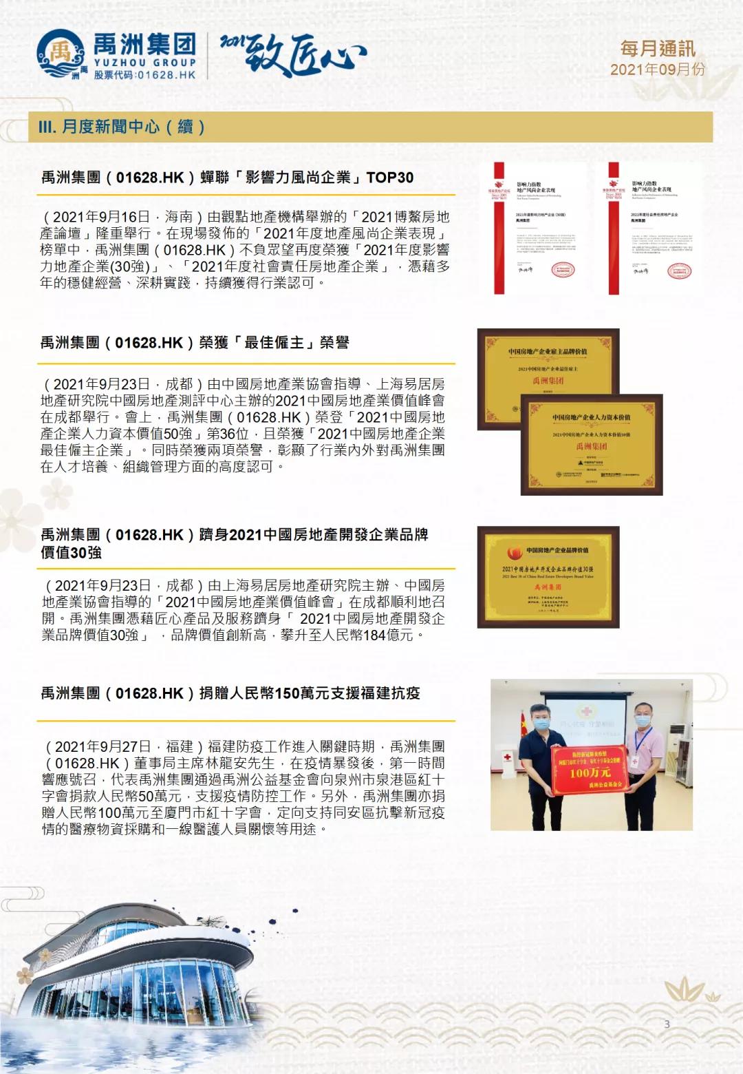 2021年9月,禹洲集團實現(xiàn)合約銷售金額為人民幣90.32億元,合約銷售面積為390,748平方米,合約銷售均價約為人民幣23,115元/平方米。