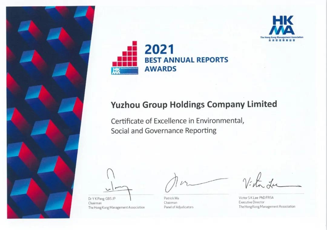 禹洲集團(tuán)(01628.HK)榮獲香港管理專業(yè)協(xié)會“最佳環(huán)境、社會及管治(ESG)報告獎”