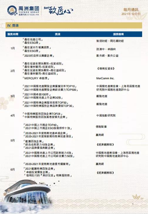 12月29日,由Roadshow China路演中、卓越IR主辦的第五屆卓越IR頒獎盛典在深圳舉行,禹洲集團獲得“2021中國上市公司-路演熱度榜TOP10”大獎。