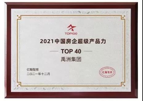 12月16日,禹洲集團依靠突出實力,于億翰智庫舉辦的“2021超級產(chǎn)品力創(chuàng)新大會”中2021中國房企超級產(chǎn)品力TOP100榜單”獲得TOP32的優(yōu)異成績,同時摘得“2021中國房企景觀營造力TOP10”、“2021中國房企社群運營力TOP10”兩項殊榮,力證集團匠心品質(zhì)。