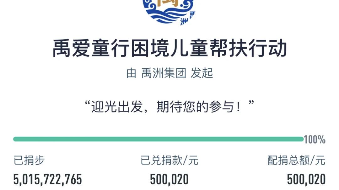 禹愛(ài)童行 迎光出發(fā)。在“禹愛(ài)童行”困境兒童幫扶計(jì)劃中,有超過(guò)45支集團(tuán)、專業(yè)及各城市公司捐步代表隊(duì)捐出近10億愛(ài)心步數(shù),做公益的踐行者和大愛(ài)的傳播者。