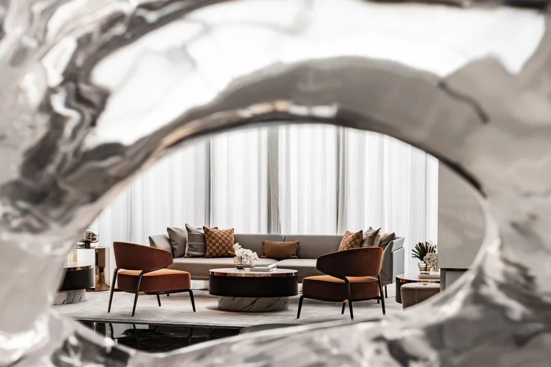 潺潺的溪泉以極優(yōu)美極寫(xiě)實(shí)的狀態(tài)被定格在了最優(yōu)雅的一瞬間,清水在其中流動(dòng),靈魂在其中交融。透過(guò)水流,洽談區(qū)呼之欲出,一個(gè)嶄新的藝術(shù)情境漸入佳境。