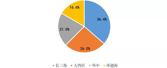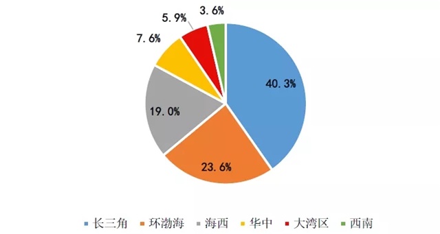 圖:2019年上半年禹洲地產六大區(qū)域土地儲備面積占比情況