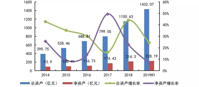 圖:2014-2019年上半年禹洲總資產和凈資產情況
