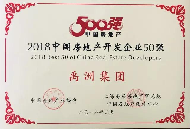 禹洲集團(tuán)榮膺“2018中國房地產(chǎn)上市公司綜合實力50強(qiáng)”第37名