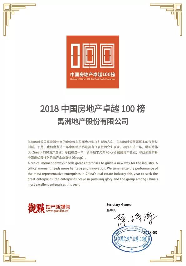 “2018中國房地產(chǎn)卓越100榜發(fā)布盛典”現(xiàn)場,全國眾多主流媒體、研究機構、地產(chǎn)開發(fā)企業(yè)、投資機構、金融投行及專業(yè)機構,共同見證禹洲集團登上中國房地產(chǎn)卓越100的光榮榜。