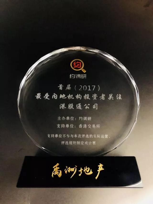 2018年4月25日,禹洲地產(chǎn)憑借在過去一年優(yōu)異的表現(xiàn),入選首屆“最受內地機構投資者關注港股通公司”(前100強)。