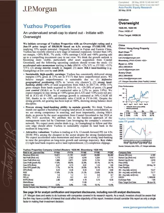 摩根大通首次覆蓋 給予禹洲地產(chǎn)買入評級 目標(biāo)價8.5港元