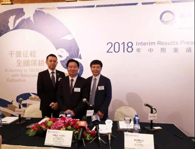 業(yè)績發(fā)布會現(xiàn)場:董事局主席林龍安太平紳士(中)、執(zhí)行總裁蔡明輝先生(右)、財務總監(jiān)兼公司秘書黃展鴻先生(左)