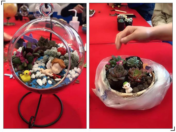 大家在老師的指導下,自由挑選自己喜歡的多肉植物搭配可愛精致的裝飾,將可愛的多肉在小小的花盆中變化出奇妙的世界,碰撞出詩意般的春天。