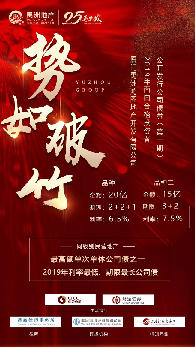 值得一提的是,本次債券發(fā)行連破兩項(xiàng)紀(jì)錄,分別是“AA+”民營(yíng)地產(chǎn)企業(yè)最高額單次單體公司債之一,以及2019年“AA+”民營(yíng)地產(chǎn)企業(yè)利率最低、期限最長(zhǎng)公司債。禹洲地產(chǎn)以穩(wěn)健財(cái)務(wù)獲得業(yè)內(nèi)強(qiáng)烈認(rèn)可。