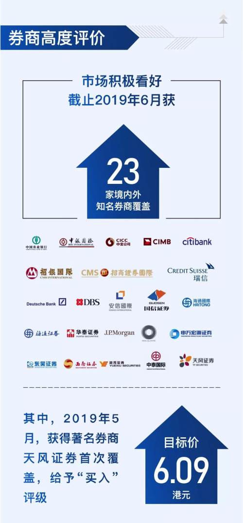 由于銷(xiāo)售表現(xiàn)亮眼,禹洲地產(chǎn)屢獲獎(jiǎng)項(xiàng),受到大行及券商的積極評(píng)價(jià)。截至2019年上半年,共有境內(nèi)外23家券商覆蓋,其中,天風(fēng)證券在今年首次覆蓋,予以“買(mǎi)入”評(píng)級(jí)與6.09港元的目標(biāo)價(jià)格。