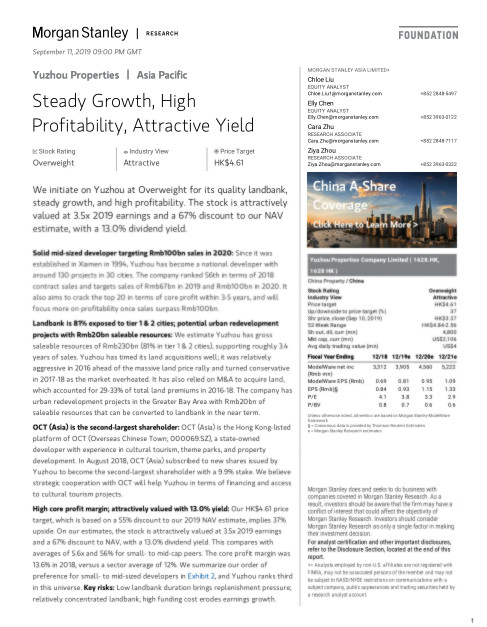 摩根士丹利首次覆蓋,給予禹洲地產(chǎn)(01628.HK)“買入評級”