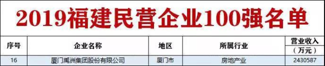 實(shí)力共鑒,禹洲集團(tuán)榮獲2019福建民營(yíng)企業(yè)100強(qiáng)第16位!