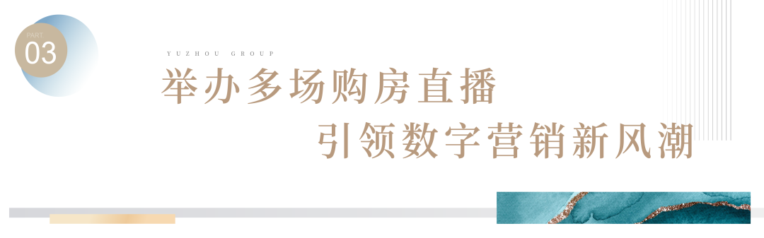 禹洲集團(tuán)積極布局?jǐn)?shù)字營(yíng)銷渠道,將售樓部從線下搬到線上,突破以往看房、選房、購(gòu)房的傳統(tǒng)模式,引領(lǐng)地產(chǎn)營(yíng)銷變革潮流,已在北京、上海、天津、蘇州、廈門、南京、合肥、重慶等全國(guó)多個(gè)城市舉辦購(gòu)房直播。早在春節(jié)期間,禹洲集團(tuán)就開展“全民看直播,到訪送好禮”活動(dòng),全國(guó)各項(xiàng)目在線觀看累計(jì)約5萬+人次,點(diǎn)贊互動(dòng)熱度超10萬+。3月,重慶公司積極展開“云端無憂看房”活動(dòng),推廣足不出戶線上看房,累積4萬+人次訪問禹洲·博學(xué)家直播間,熱度值超30萬+。近期,禹洲集團(tuán)更是啟動(dòng)了“禹鄰樂活節(jié)”活動(dòng),合肥、蘇州、重慶等地多個(gè)項(xiàng)目持續(xù)進(jìn)行購(gòu)房直播,引發(fā)購(gòu)房者關(guān)注和互動(dòng),掀起數(shù)字營(yíng)銷高潮。