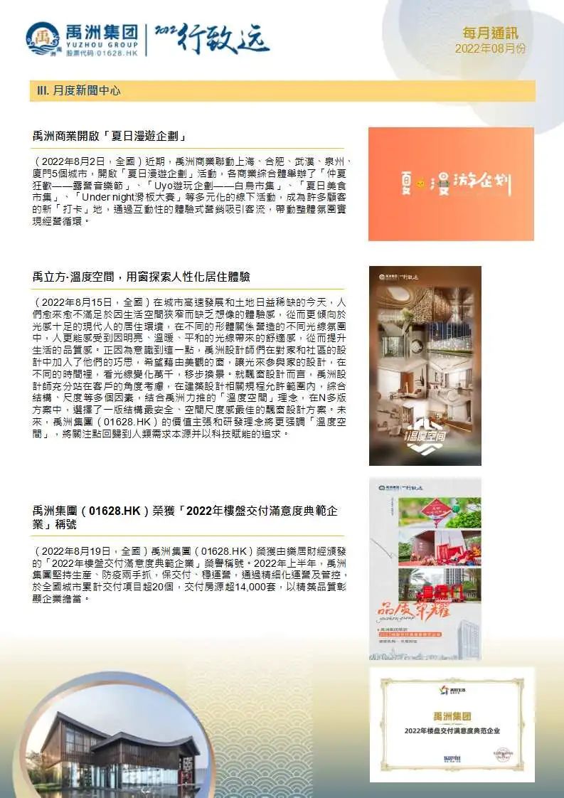 面對(duì)疫情反復(fù)和宏觀經(jīng)濟(jì)的不確定性等困難,禹洲集團(tuán)歷經(jīng)重重考驗(yàn),以高效的執(zhí)行力完成了上半年復(fù)工、竣備、交付工作的目標(biāo),為下半年的發(fā)展奠定了穩(wěn)固的基礎(chǔ)。展望2022年下半年,禹洲集團(tuán)將始終堅(jiān)持積極履行承諾,遵從“保交房、保民生、保償付、保穩(wěn)定”的四保要求,始終堅(jiān)守穩(wěn)健策略,凝心聚力保持韌性,繼續(xù)攻堅(jiān)克難,不斷突破,尋找新的發(fā)展機(jī)遇。