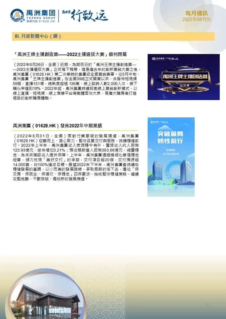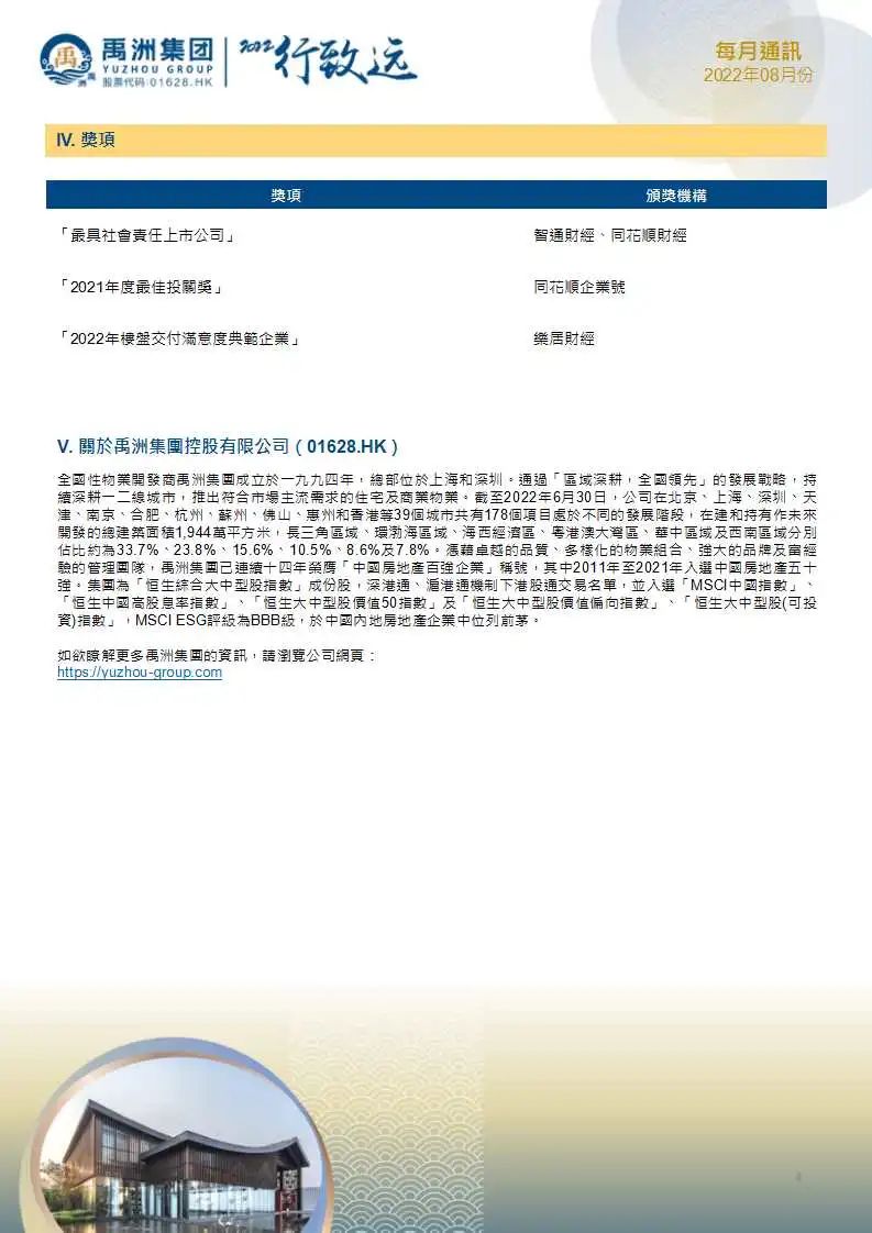 2022年8月,禹洲集團(tuán)實(shí)現(xiàn)合約銷售金額為人民幣25.73億元,合約銷售面積為139,680平方米,合約銷售均價(jià)約為人民幣18,423元/平方米。