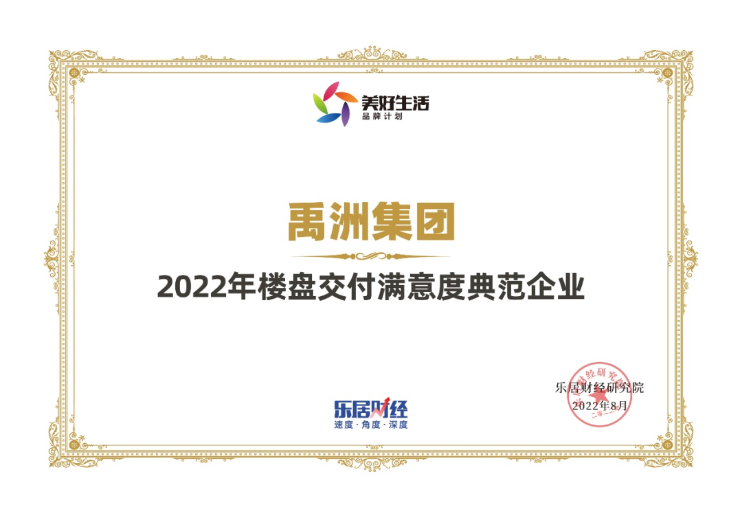 8月19日,禹洲集團(tuán)榮獲由樂居財(cái)經(jīng)頒發(fā)的“2022年樓盤交付滿意度典范企業(yè)”榮譽(yù)稱號(hào)。本次評(píng)選是樂居財(cái)經(jīng)“中國(guó)美好生活品牌計(jì)劃”的重要組成部分,在評(píng)選過程中直擊30城交付現(xiàn)場(chǎng)、參考200余樓盤的交付表現(xiàn)和交付樓盤的交房滿意度得分,最終推出“2022年樓盤交付滿意度”典范企業(yè)名單。