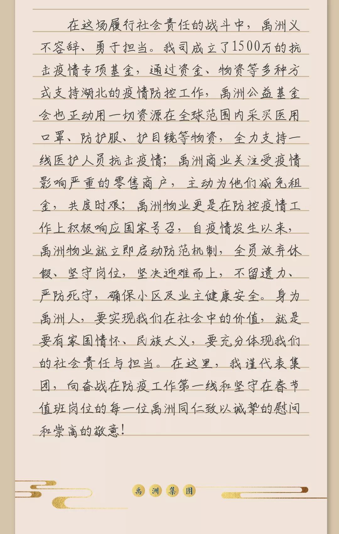 本公司網(wǎng)站內(nèi)容為禹洲集團版權(quán)所有的文件,網(wǎng)站上的文件僅限于為公司形象信息展示和非商業(yè)目的使用,在此并未授權(quán)任何個人、單位或組織在任何網(wǎng)絡(luò)、任何媒體上復(fù)制或公布。未經(jīng)版權(quán)人許可,任何人不得擅自以非法的方式復(fù)制、傳播、展示、鏡像、上載、下載使用上述文件(包括但不限于上述范圍所指內(nèi)容),否則版權(quán)人將依法追究其法律責(zé)任。